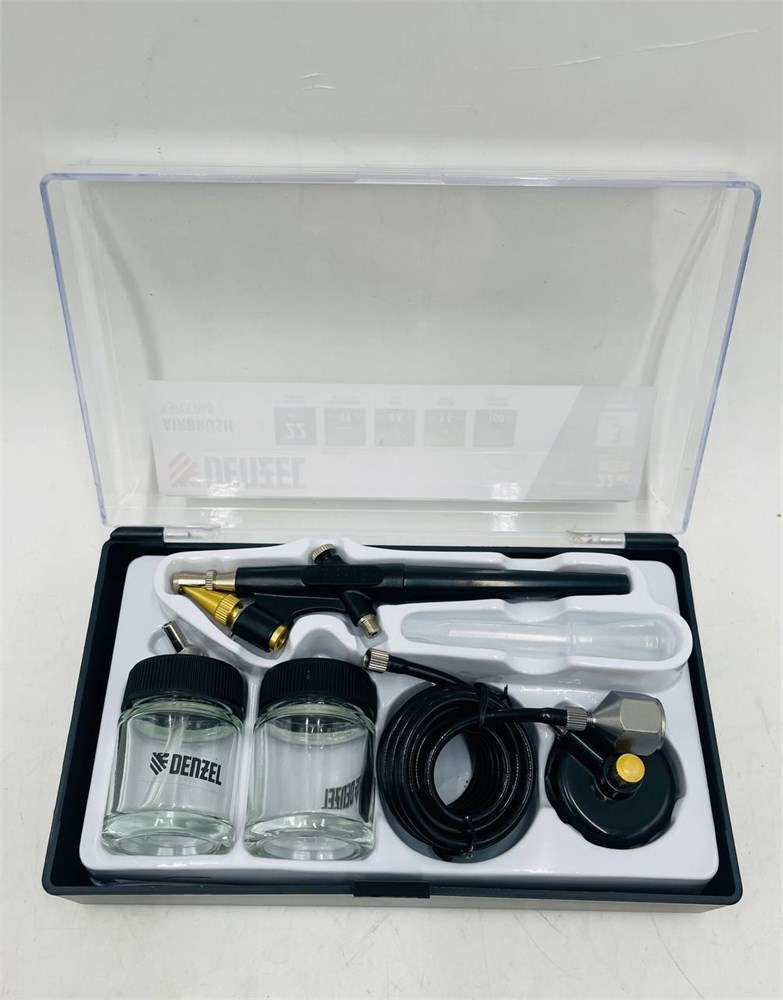 Аэрограф Denzel AB2 57311 с нижним бачком объемом 22 мл расходует 11 л сжатого воздуха в минуту и формирует струю краски диаметром 0,8 мм. Предназначен для выполнения тонких художественно-декоративных и покрасочных работ. Имеет курок одинарного действия: скорость воздушного потока постоянна на протяжении всего времени работы. Аэрограф позволяет создавать рисунки на кузовных элементах автомобилей, мото- и другой техники, а также на прочих поверхностях.